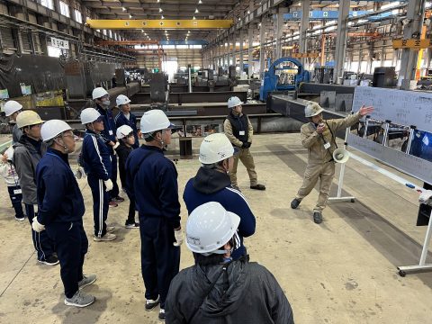 終了後は、尾道工場に場所を移し、工場見学を実施。普段なかなか見ることのない現場に、他部署社員やご家族も興味津々の様子でした。