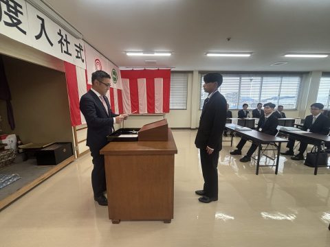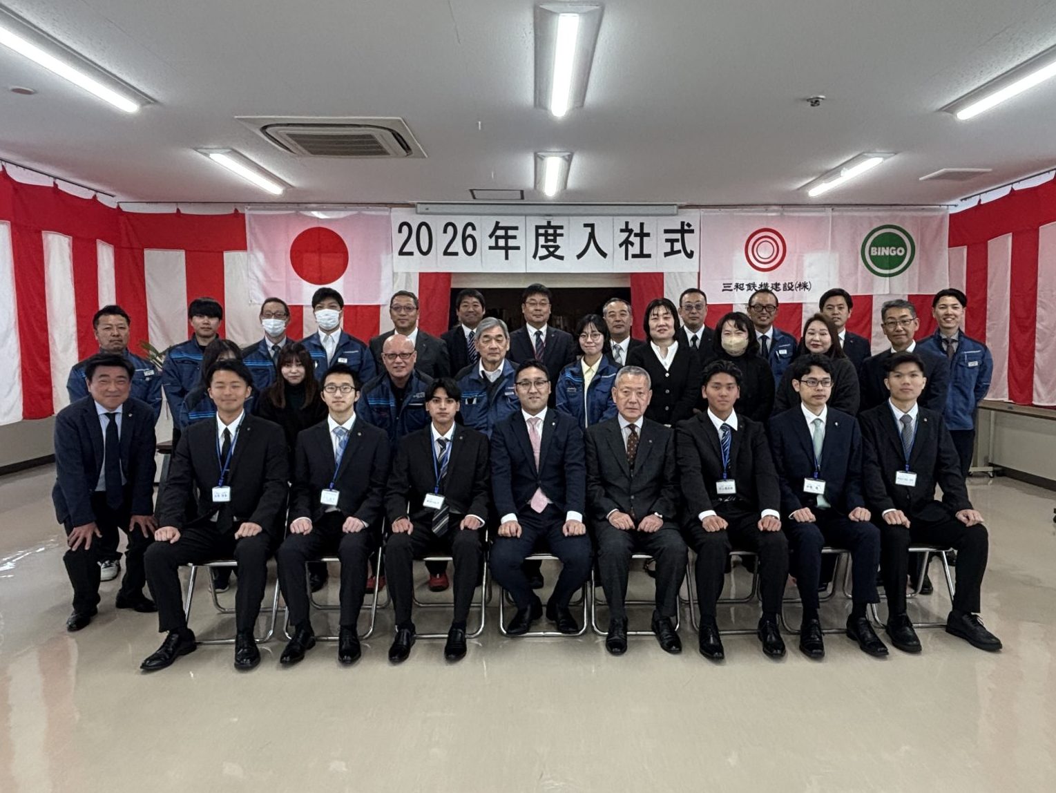 三和鉄構建設(株)に5名、備後道路(株)に2名の新入社員を迎えて2026年度入社式が挙行されました。